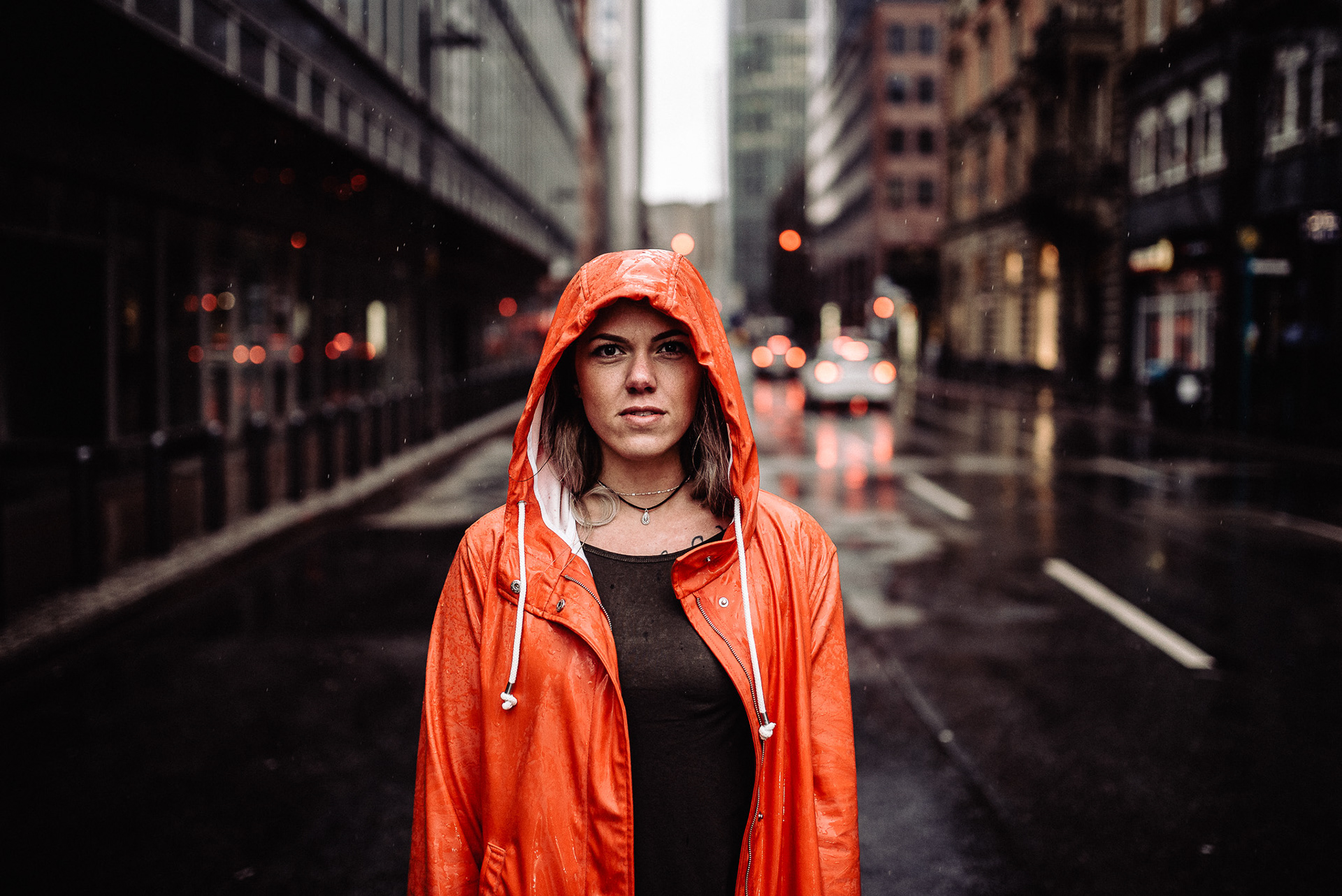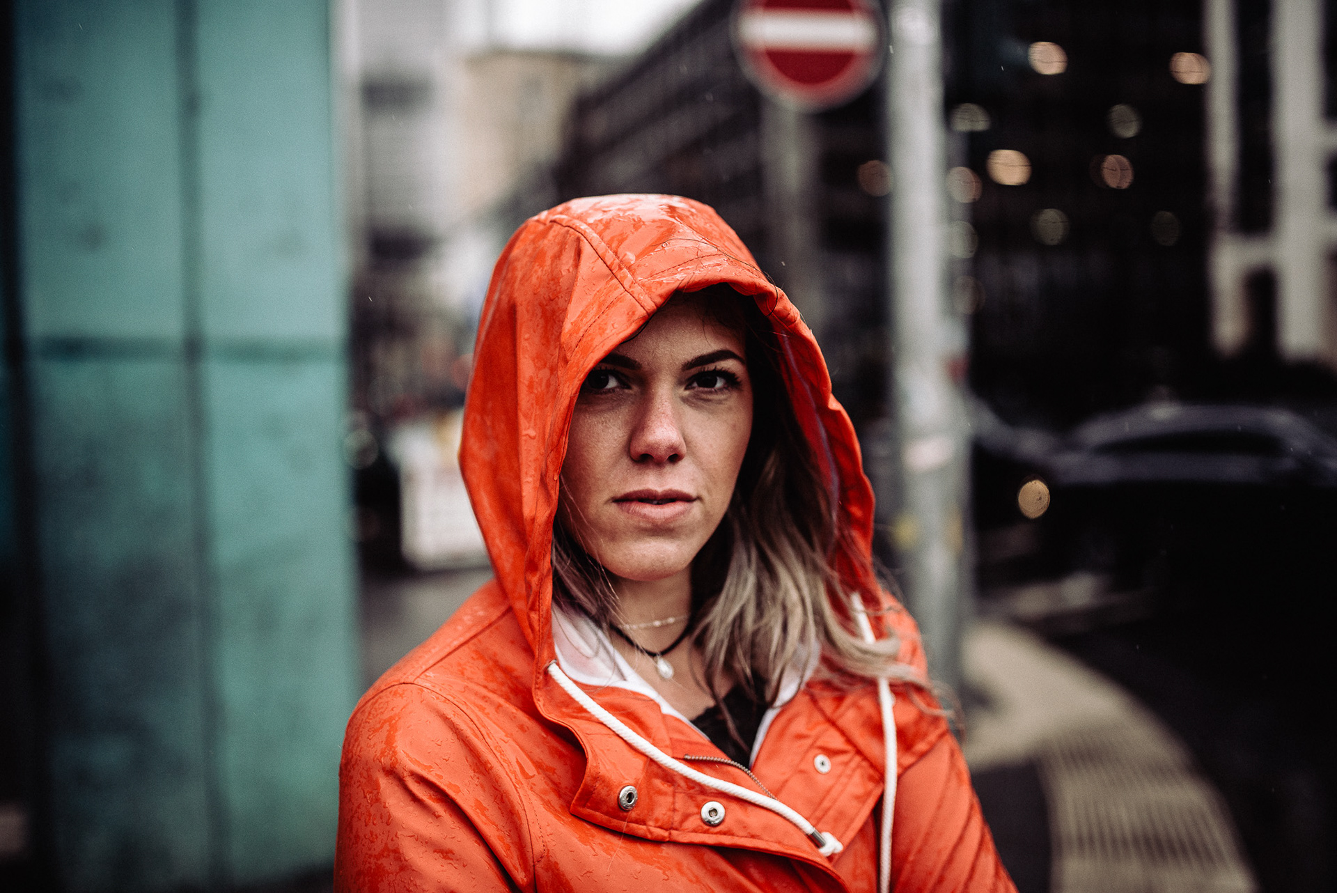 street portrait on a rainy day in frankfurt